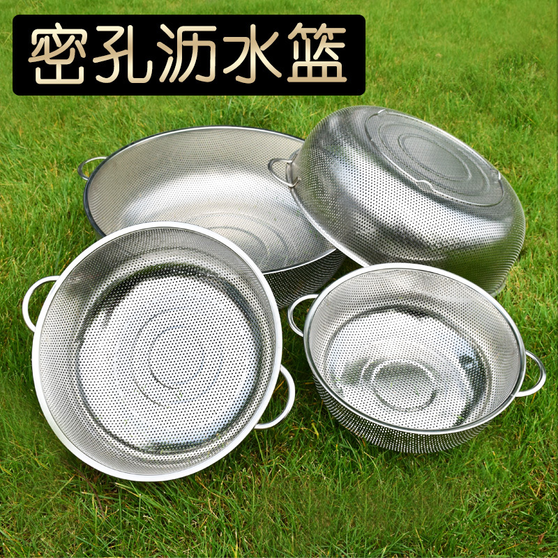 304不锈钢密孔沥水篮双耳加厚水果篮淘米洗菜盆沥油盆多用篮漏盆