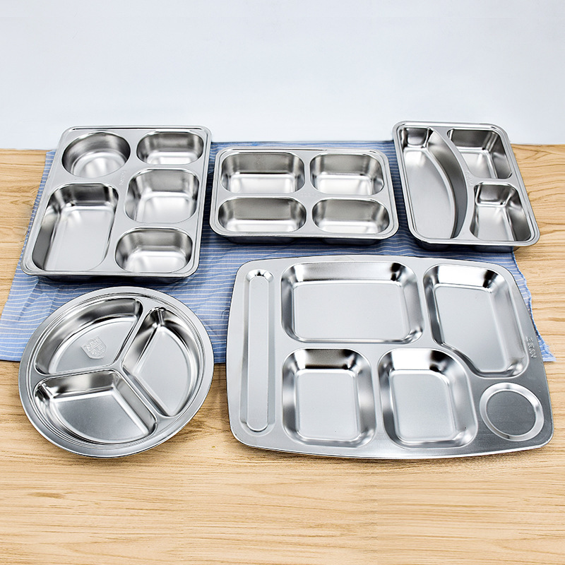 304 不锈钢餐盘方形四格快餐盘儿童成人学生食堂分餐盘分格