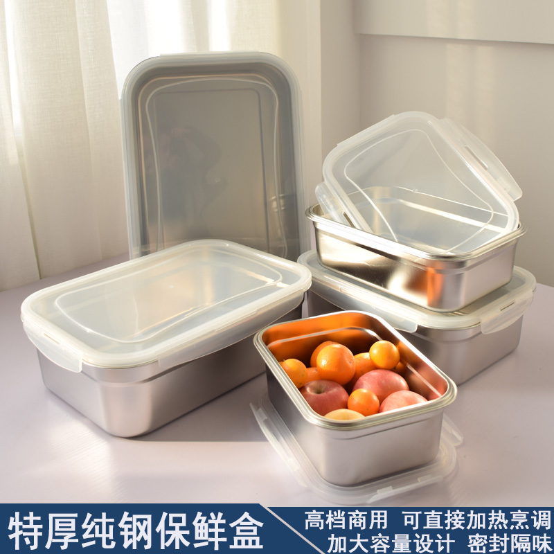 保鲜盒 不锈钢密封塑料盖带盖长方形厨房食物冷藏储物盒304留样盒